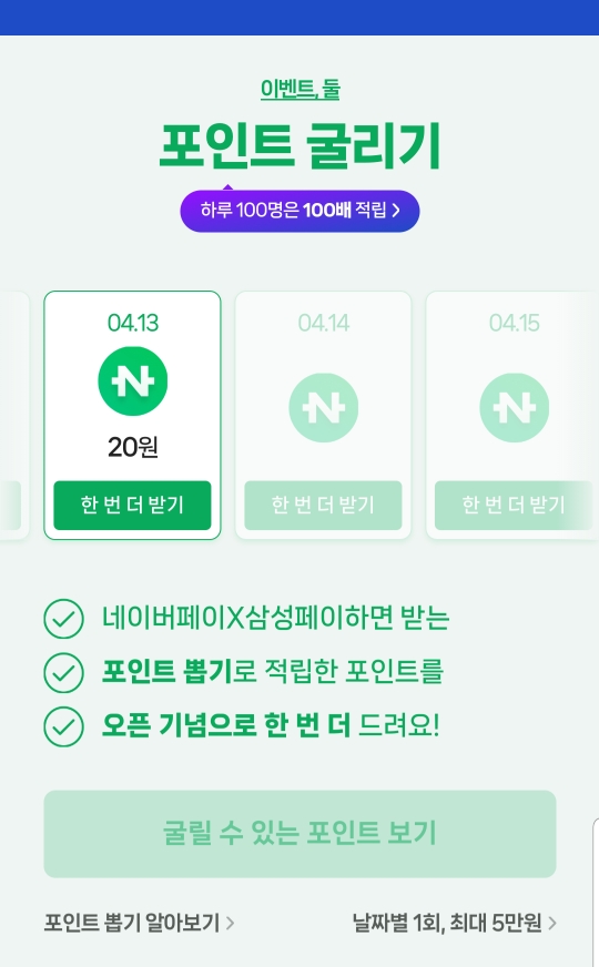 위에서 받은 포인트를 한번 더 받을 수 있었다
