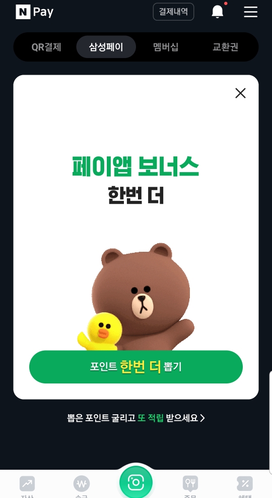 포인트를 뽑고 네이버페이앱으로 결재를 해서 한번더