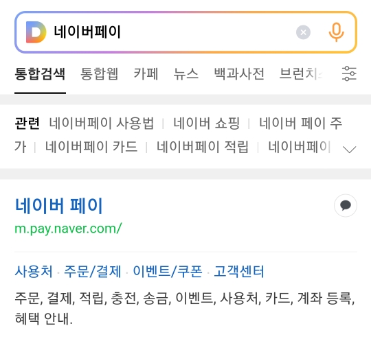 우선 검색창에 네이버페이를 검색하고 들어갑니다